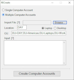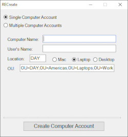 As mentioned before, we were looking at needing around 200 computer accounts created. On average this task per account could take from 30 seconds to a minute depending on how fast you are with a mouse and keyboard as well as keeping an eye on which asset tag & user name you were currently on.